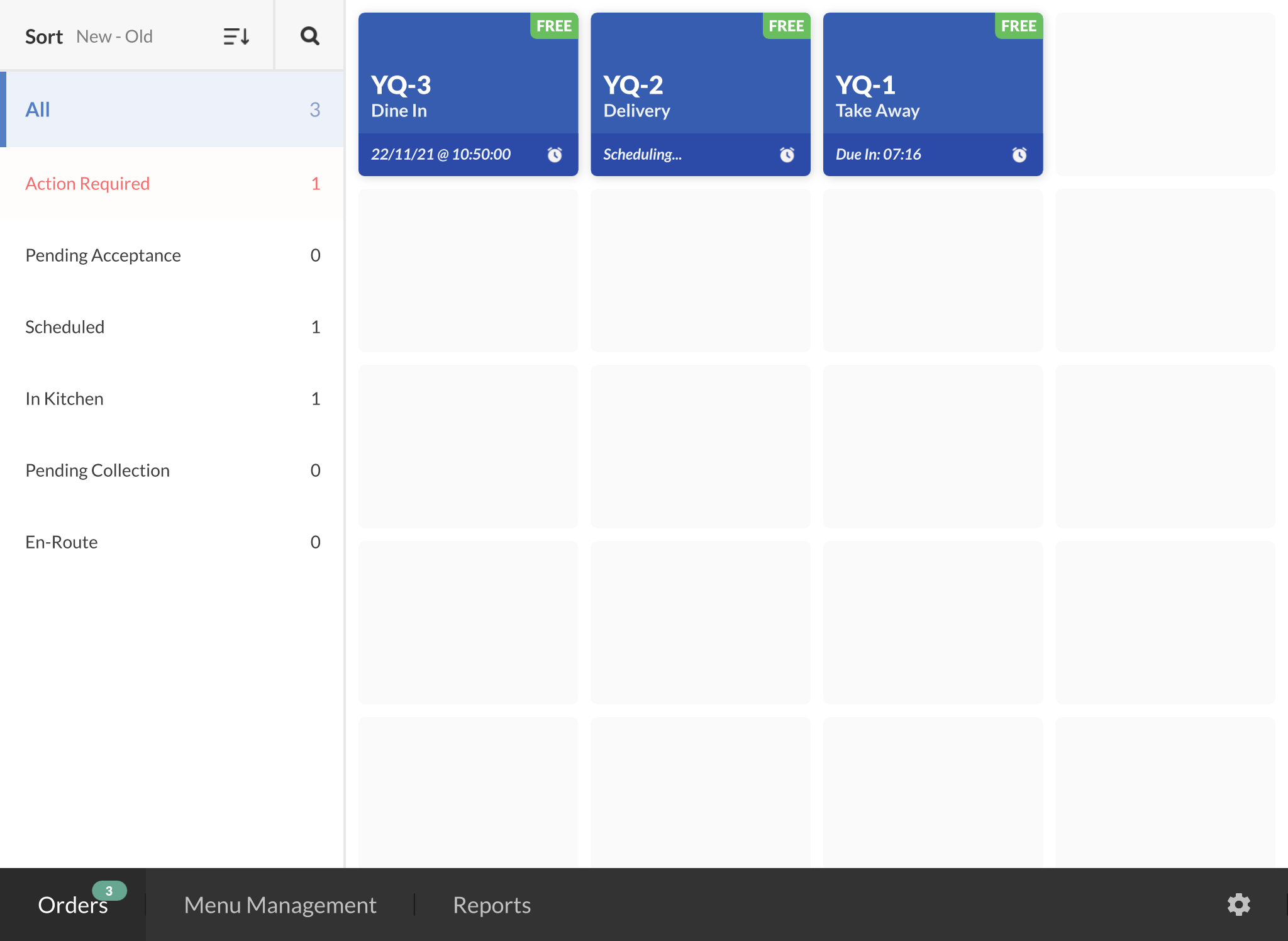 This view shows all orders that are currently pending an action by the outlet, such as accepting or rejecting a delivery order.